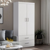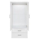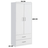کمد لباس مدل IKE4157 جنس روکش از ملامینه ضد خش میباشد و دارای دو عد درب با لولای آرام بند با کیفیت و دو عدد کشو با ریل ساچمه ای با کیفیت و از استحکام و مقاومت بالایی برخوردار است و در رنگ بندی های زیبا و شکیل میباشد .