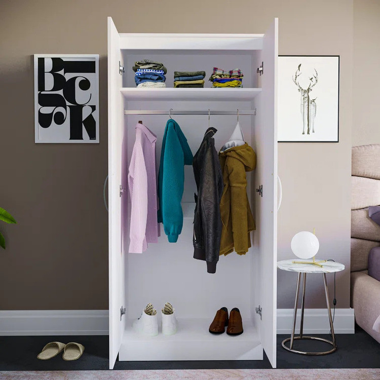 کمد لباس مدل IKE628 جنس روکش از ملامینه میباشد و دارای دو درب با لولای با کیفیت و این کالا از استحکام و مقاومت بالایی برخوردار است و در رنگ بندی های زیبا و شکیل میباشد.