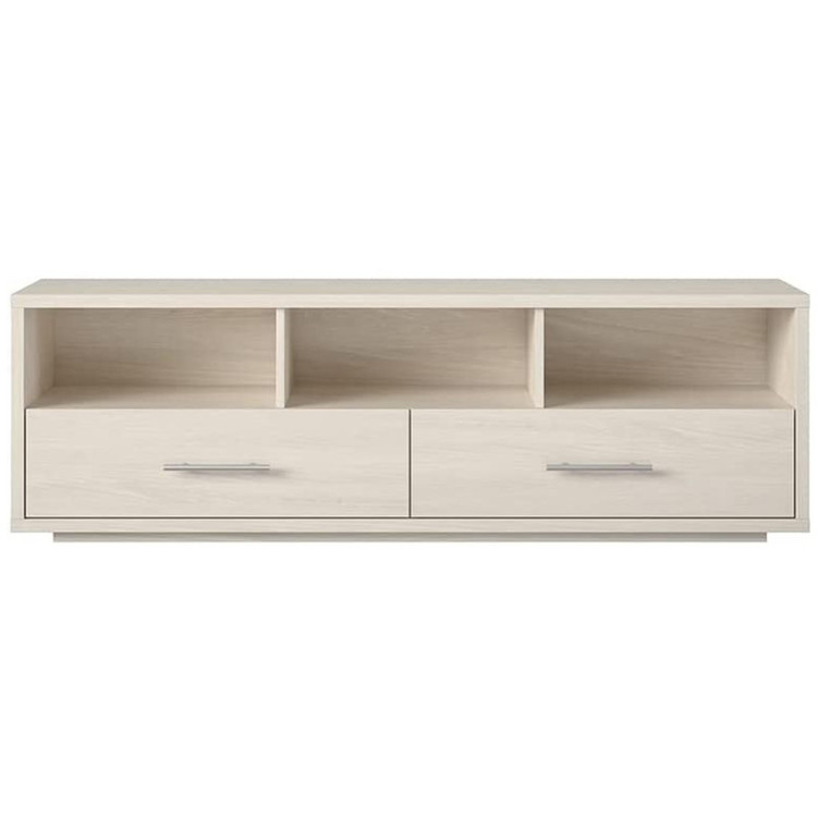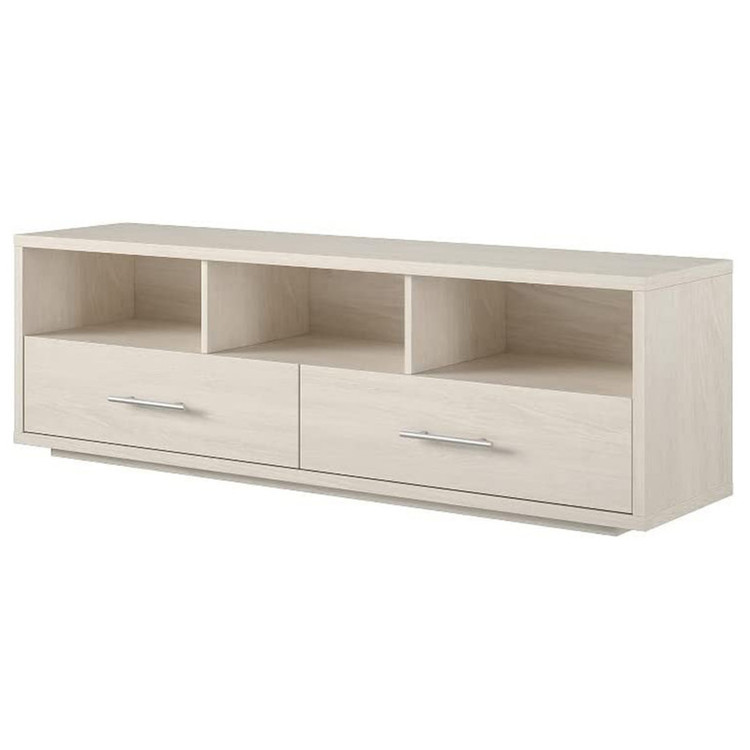 میز تلویزیون کد IKE 357 جنس روکش از ملامینه ضد خش میباشد و دارای دو عدد کشو با ریل ساچمه ای درجه یک و دارای دو عدد دستگیره فلزی مستحکم و دو طبقه در میز وجود دارد که یکی از طبقات به سه قسمت تقسیم شده است و مستحکم و مقاوم میباشد .