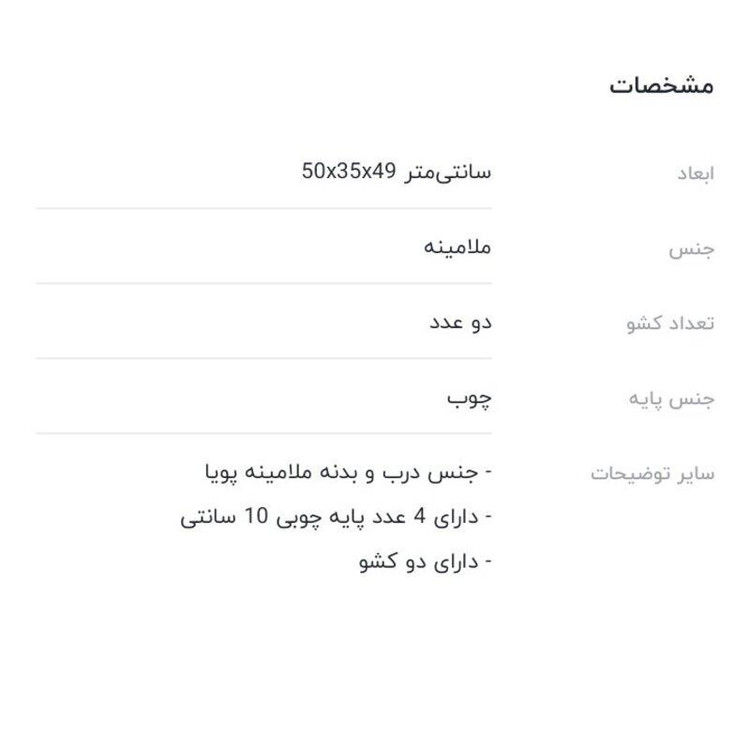 پاتختی دو کشو پایه کوتاه