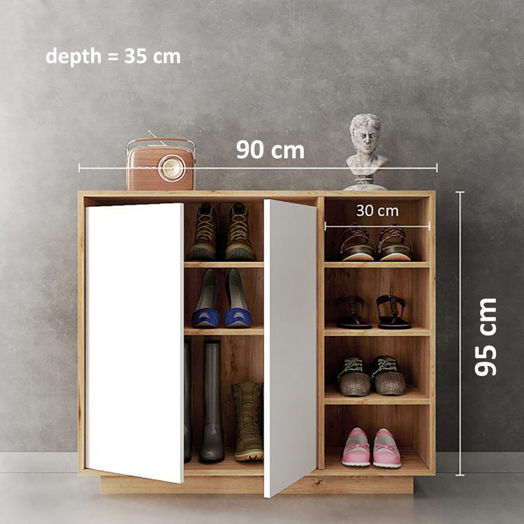 جاکفشی درب دار کد IKE 362 جنس روکاز ش ملامینه ضد خش میباشد و دارای دو درب که درب ها دارای لولای آرام بند درجه یک و دارای هفت طبقه ( سه طبقه داخل درب ها و چهار طبقه کنار دچند رنگ شامل بدنه و طبقرب) و از استحکام و مقاومت بالایی برخوردار است . ت قهوه ای روشن و دربهای سفید میباشد .