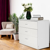 دراور سه کشو مدل IKE369 جنس روکش ملامینه ضد خش میباشد و کشو ها با ریل ساچمه ای با کیفیت دستگیره فلزی مستحکم در سه رنگ گردویی ، سفید و آنتیک طلایی زیبا و شکیل میباشد.