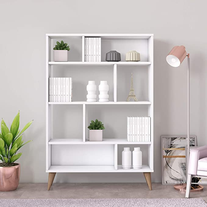 کتابخانه IKE538 دارای چهار طبقه و 8 باکس می باشد.دارای طراحی هارمونیک و زیبا می باشد.و دارای چهار عدد پایه طرح چوب پلاستیکی و همچنین استحکام این کتابخانه جهت کالاهای دکوراتیو و کتاب مناسب است.این محصول در سه نگ سفید ، قهوه ای روشن و قهوه ای تیره میباشد