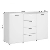کنسول دکوراسیون مدل IKE 523با لبه های pvc شده و تولید شده با ماشین آلات تمام اتوماتیک میباشد. این محصول دارای چهارکشو و دو کمد درب دار دارای چهار طبقه و صفحه به طول 120 سانتیمتر، فضای کافی را برای چیدن وسایل پذیرایی و آینه و شمعدان در اختیار شما قرار می دهد.