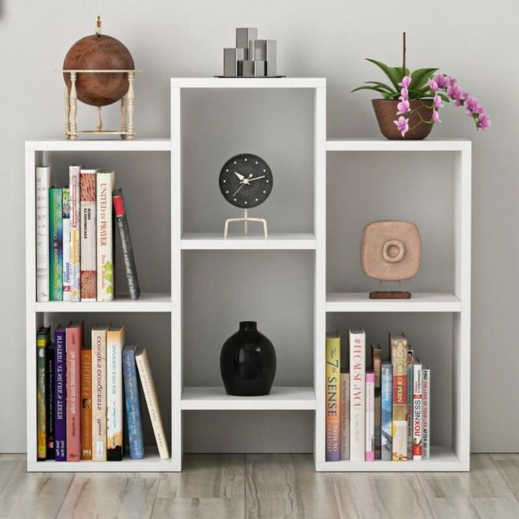 کتابخانه سفید دارای شش قفسه در رنگبندی مختلف ارسال به صورت باربری با پس کرایه