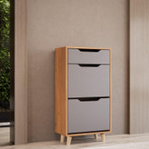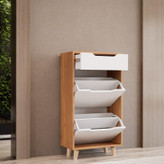 جنس ورق استفاده شده تمام ام دی اف هست و در مقایسه با نئوپان از مقاومت و ظرافت بیشتری برخوردار است. ظرفیت نگهداری 8 جفت کفش بزرگسال و مناسب برای منازل تا 70 متر برای منازل با متراژ بیشتر میتونید از محصولات 3،4 و یا 6 در استفاده کنید. قابل سفارش در رنگ های سفید ،گردویی،فندقی ،طوسی و ترکیب این 4 رنگ