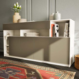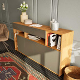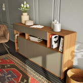 سفید / گردویی / طوسی / فندقی / سفیدگردویی / سفیدفندقی / طوسی گردویی / طوسی فندقی بدنه و درب کنسول TA-025 از جنس MDF درجه یک و ضد خش می باشد. TA-015 دارای دو درب کنار باز شو می باشد.