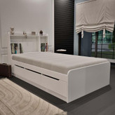 این تخت تمام ام دی اف می باشد سایز تشک 2 در 120 طول و عرض تخت 2.20 در 120 دارای 3 کشو در زیر تخت و در رنگهای سفید/فندقی/طوسی/سفیدفندقی/طوسی گردویی/طوسی فندقی و ترکیب این رنگ ها