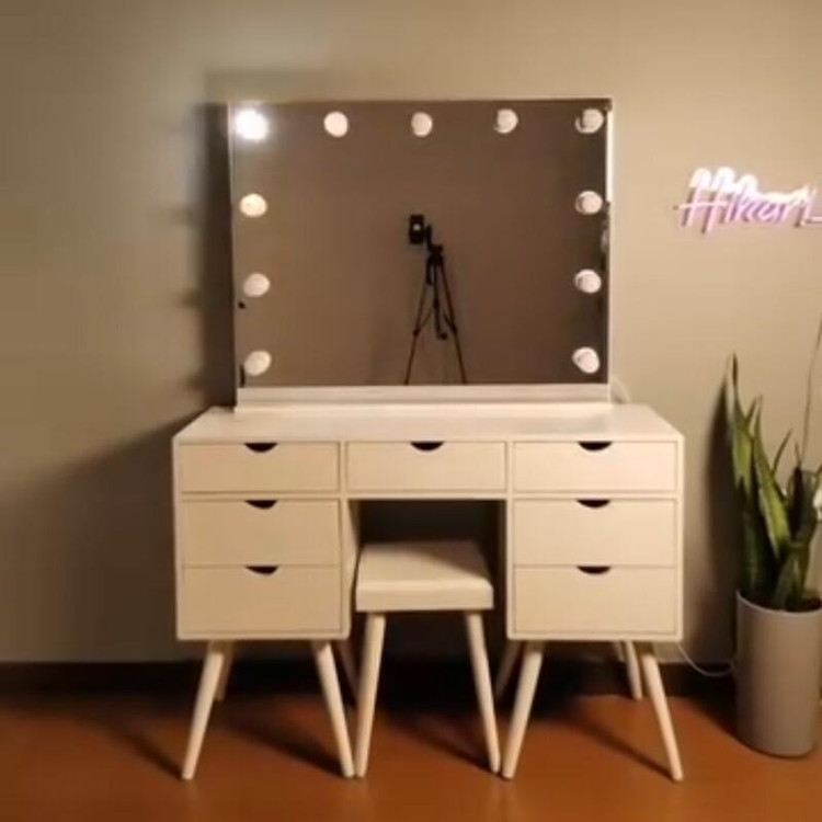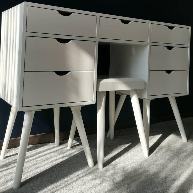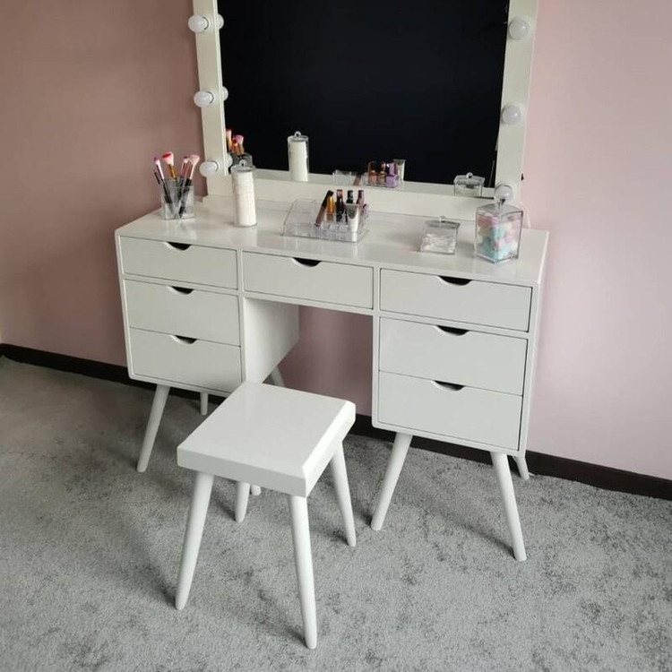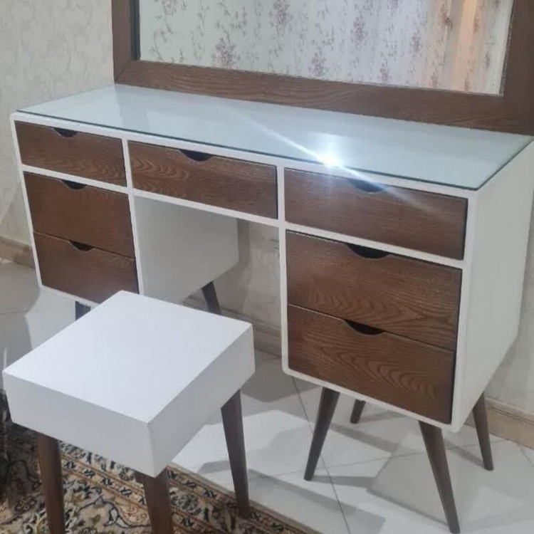 میز آرایش بدونه آینه و پاف رنک سفید و گردویی جنس ملامینه