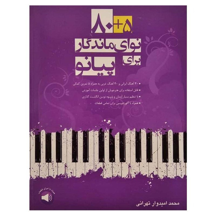 معرفی کتاب هشتاد اثری که در کتاب 5+80 نوای ماندگار برای پیانو انتخاب شدهاند، از شناخته شدهترین قطعاتی هستند که اکثر اساتید و مربیان در طول روند تدریس پیانو، در اختیار هنرآموزان قرار میدهند. تا پیش از این برای بدست آوردن حتی بخش کوچکی از این آهنگها، نیاز به تهیهی منابع متعددی از کتب مختلف بود، ولی اکنون تمامی آنها در یک مجموعه ی واحد گردآوری ، و با یک استاندارد واحد تنظیم شدهاند. همچنین به غیر از این هشتاد اثر برگزیده، پنج تمرین پایهای و مقدماتی هم به نتهای موجود در کتاب 5+80 نوای ماندگار برای پیانو اضافه گردیدهاند: مجموعا هشتاد و پنج اثر برای پیانو، که در کنار متدهای مقدماتی، برای بالا بردن مهارتهای هنرآموزان مفید خواهند بود. نتهای این مجموعه به همراه یک لوح فشرده که در آن تمام آهنگهای کتاب به ترتیب و با کیفیتی مطلوب اجرا شدهاند، ارائه گردیدهاند. کتاب 5+80 نوای ماندگار برای پیانو دارای دو بخش مجزا، شامل: پنج تمرین مقدماتی به اضافهی چهل آهنگ ایرانی و شرقی از ملودیها و قطعات زیبای شرقی، محلی، بومی و خاطرهانگیز کشور عزیزمان، و همچنین چهل آهنگ کلاسیک و پاپ کلاسیک غربی از مشهورترین آثار آهنگسازان و نوازندگان جهان میباشد، که در دو فصل جداگانه ارائه میشوند. قطعات هر کدام از این دو فصل دارای ترتیب مشخصی هستند: از سادهترین و ابتداییترین قطعات به تدریج تا قطعاتی که پیشرفتهتر هستند؛ با این وجود شیب کنترل شدهی مسیر حرکت کتاب 5+80 نوای ماندگار برای پیانو به گونهای طراحی شده که هنرآموز دچار دلزدگی و خستگی نشود، و از تک تک لحظههای آموزش لذت ببرد از این رو گاهی نیز قطعاتی با پیچیدگی بالاتر، عمدا در لابه لای قطعات آسانتر گنجانده شدهاند. تقریبا تمام آهنگها، نتها و تنظیمهای کتاب 5+80 نوای ماندگار برای پیانو در طی حدودا 12 سال بارها مورد آزمون، بازنویسی، تغییر و تایپ مجدد قرار گرفتهاند تا نسخهی ایده آلتری و بدون اشکلی حاصل شود.