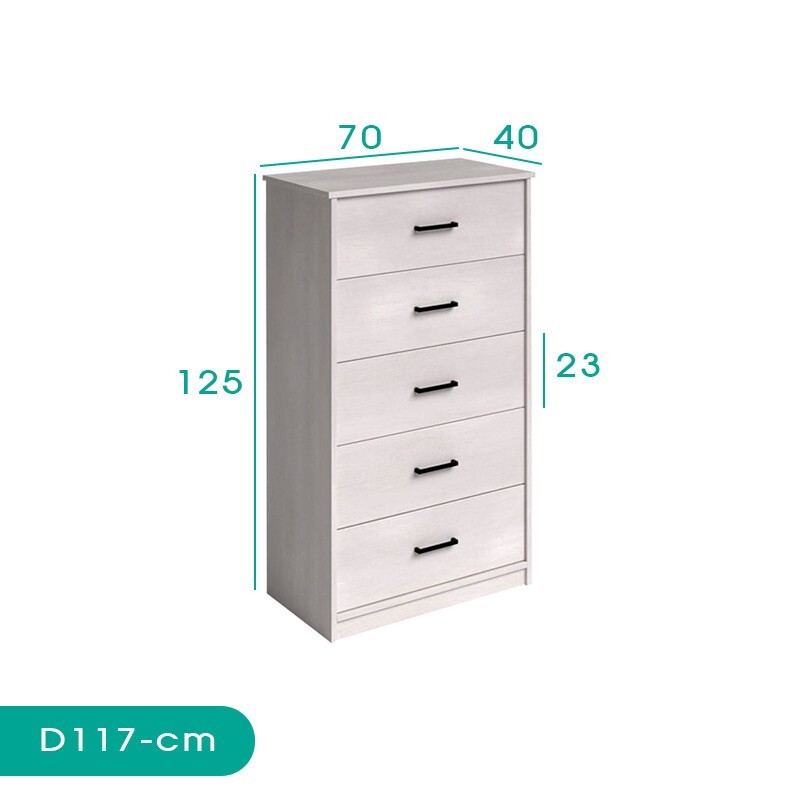 دراور اسمردیس مدل D117 دارای 5 کشو با ابعادی مناسب است و فضای کمی می گیرد.