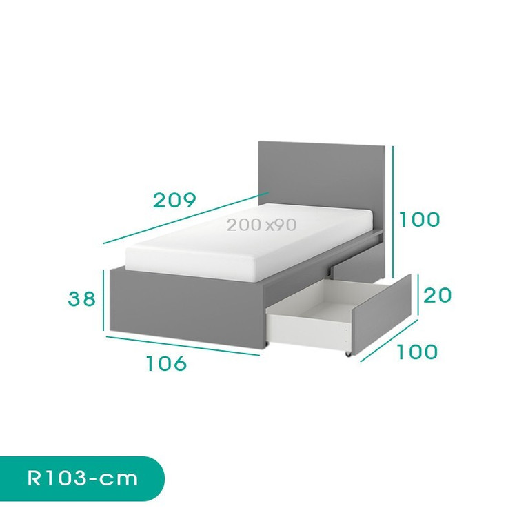 تخت خواب یک نفره مدل +R103 -MDF سایز 200x90 سانتی متر