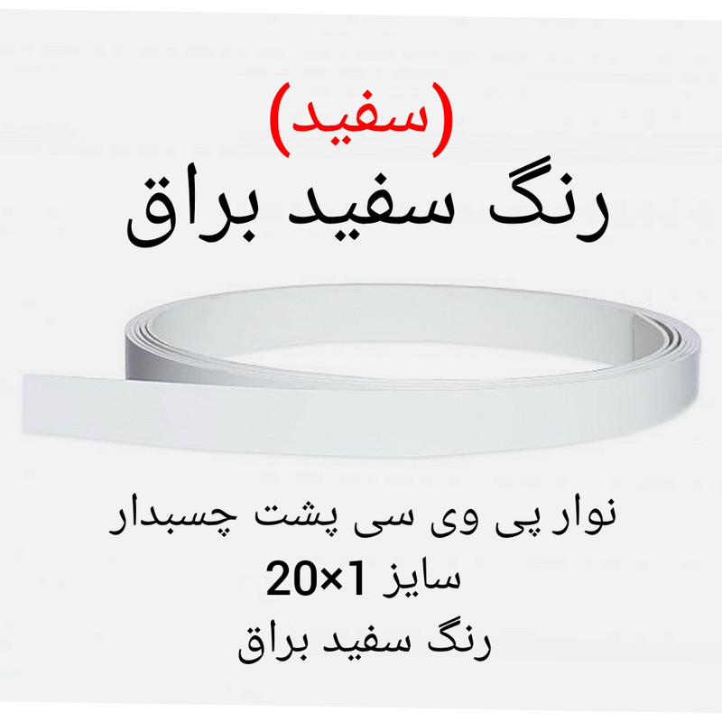 نوار پی وی سی برای پوشاندن دور ام دی اف رنگ سقید براق اندازه 1x20 طول 50 متر این نوار دارای پشت چسبدار و با اتو به راحتی به روی ام دی اف میچسبد