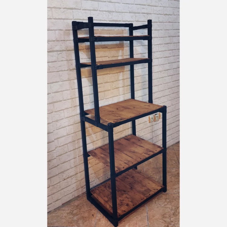 کافه بار شیک و جمع و جور با وزن پایین و تحمل وزن بالا ساخته شده از چوب روز و پروفیل آهنی ه با بست به هم وصل شده و به راحتی میتونید از هم بازش کنید و طبقات رو جابجا کنید