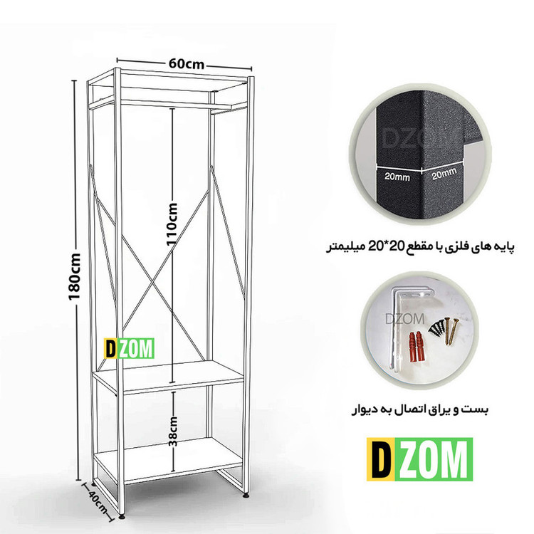 رگال لباس دیزم مدل مونتاژی RGL_60x180_B طول 60 سانتی متر