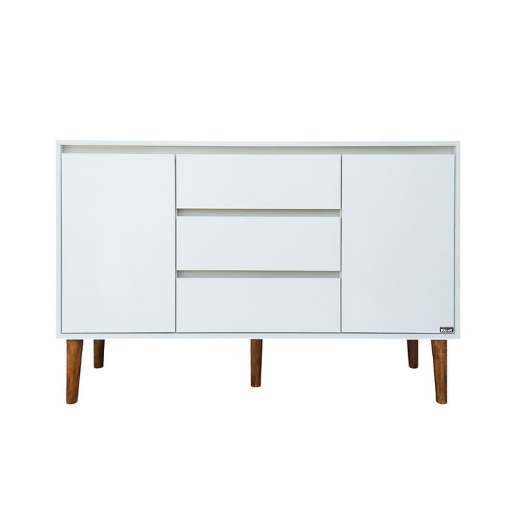 کنسول، میزی دیواری برای پر کردن فضای راهروها، اتاق خواب و سالن منازل است که علاوه بر جلوه دادن به فضای اطراف خود، جایگاه وسایل تزئینی و کاربردی زیادی مثل آینه، گلدان و وسایل پذیرایی است. کنسول صنعت و هنر چوبی کوتوک مدل کولون کد Colon، انتخاب خوبی برا زیبا و کاربردی کردن فضای خالی منازل شما است. این کنسول با لبههای pvc شده و در رنگبندی متنوع و وسیع تولید و عرضه شده است. این محصول دارای دو کابین و سه کشو است و فضای کافی برای جا دادن وسایل شما را دارد. بدنه و دربهای این کنسول از جنس ملامینه ضدخش است که دوام و مقاومت بالایی دارد. این کنسول مناسب کسانی است که با یک بار خرید انتظار استفادهی طولانی مدت از محصول خود را دارند. پایههای این محصول از جنس چوب راش هستند و 20 سانتیمتر ارتفاع دارند. ابعاد این کنسول نیز 40×80×120 سانتیمتر است و میتوان در فضاهای کوچک نیز از آن استفاده کرد.