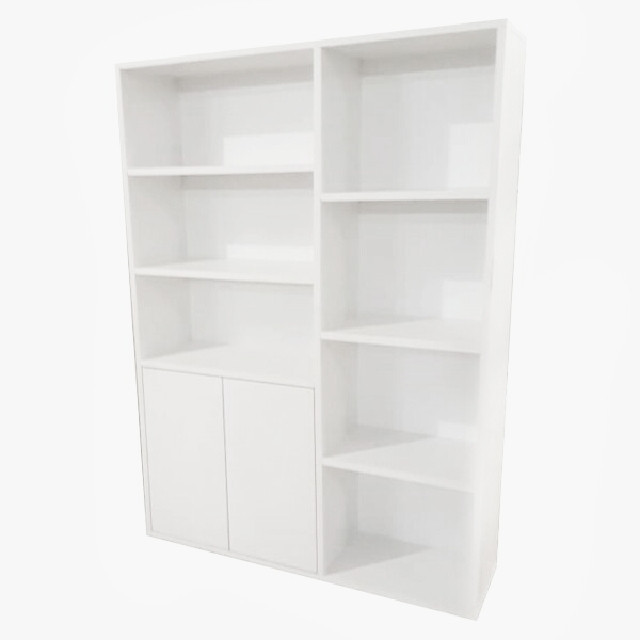کتابخانه با ورق ملامینه درجه یک ضد خش و ضد رطوبت میباشد. نوار تمام پی وی سی به کار برده شده. کتابخانه به جای دستگیره ازمگنت فشاری برای باز بسته شدن آسان تر درب استفاده شده است. بسیار زیبا و کاربردی و جادار با استحکام کافی جهت دکور و کتاب میباشد.