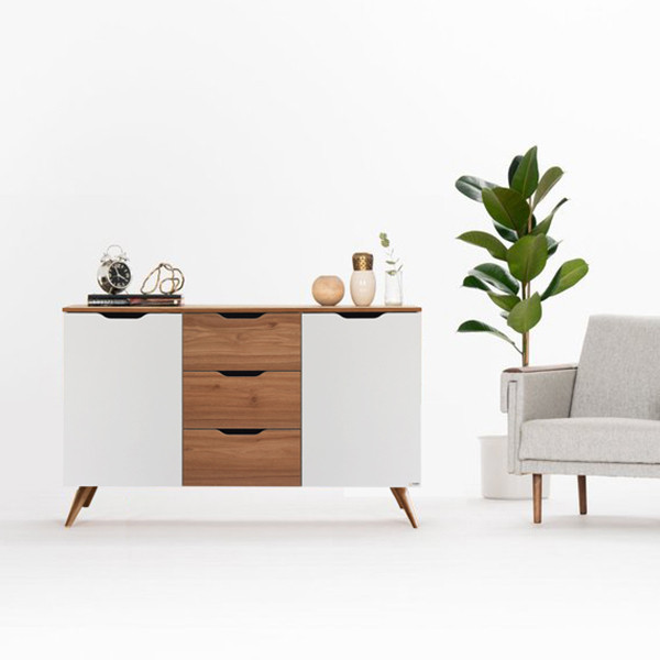کنسول مدل آلدو، وسیلهای مدرن و زیبا برای کاربرد بخشیدن به فضای خالی خانه یا محل کار شما است. امروزه در طراحی وسایل خانه، به دلیل کوچکتر شدن محل زندگی و کار انسانها، علاوه بر ظرافت و شیک بودن، جنبهی کارآمدی و جادار بودن اثاثیه نیز مورد ملاحظه قرار میگیرد. طراحی این محصول به گونهای است که میتوان آن را در هر موقعیت مکانی استفاده کرد. در تولید این کنسول با طراحی میمنیمال و مدرن، سعی شده تا وسیلهی خوبی برای قرار گرفتن و جا دادن وسایل تزئینی و کاربردی شما ارائه شود. بدنهی این کنسول از چوب باکیفیتی ساخته شده است که به راحتی میتواند با دیگر اسباب محل زندگی یا کار شما، ست شود. این محصول دارای دو در و سه کشو است که میتوان وسایل زیادی را در آنها قرار داد و به راحتی دوباره از آنها استفاده کرد. این کنسول انتخابی مطمئن و امن برای افرادی است که کیفیت، کارایی و زیبایی ظاهری برای آنها به یک اندازه اهمیت دارد.