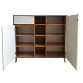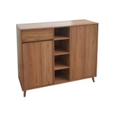 جاکفشی صنعت و هنر چوبی کوتوک مدل جیووانی دارای پایه های چوبی، دو باکس طبقه دار ، یک باکس چهار طبقه بدون درب ، یک کشو و صفحه به طول 130 سانتیمتر، فضای کافی را برای چیدن کفشها و آینه در اختیار شما قرار می دهد. جنس محصول ملامینه پویا میباشد. این محصول دارای فضای لازم برای حداقل 18 کفش بزرگسال را دارد.