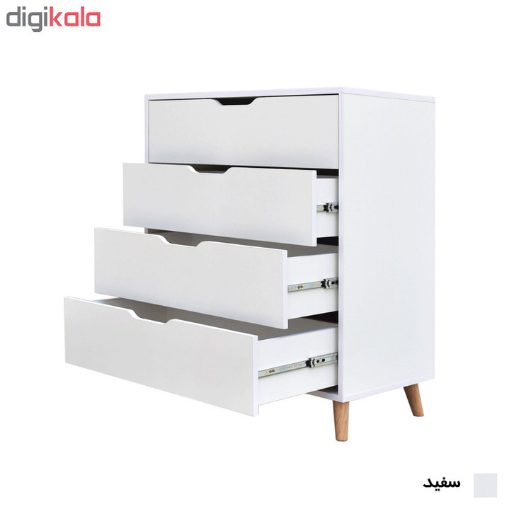 دراور با طراحی مدرن و زیبا دارای استحکام و کیفیت بینظیری بوده و برای ساخت آن از استاندارد های اروپایی استفاده شده است. کشو های این دراور عمیق بوده و فضای بسیار مناسبی برای قرار گیری لباسها بوجود آورده است. کلیه اتصالات استفاده شده از نوع الیت بوده و به هیچ وجه جای پیچ ها در نمای کار مشحص نیست. پایه های استفاده شده از جنس چوب بوده و استحکام زیادی دارد