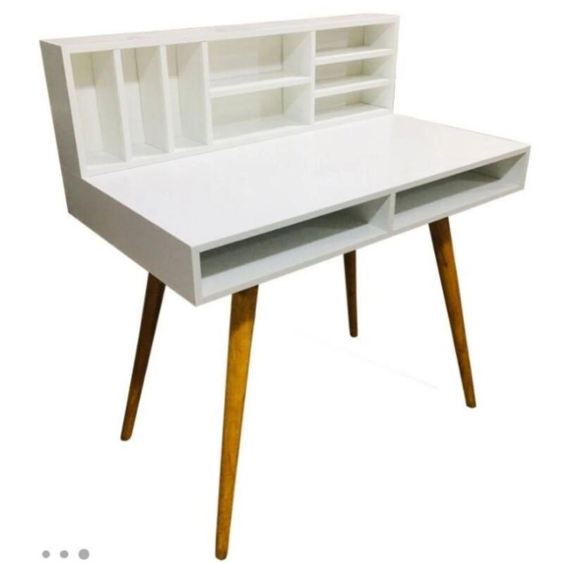 میز تحریر شلف دار در دو رنگ سفید و گردویی پایه ها از جنس نراد