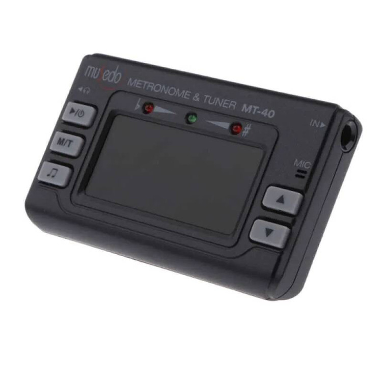 مترونوم و تیونر ماسدو (musedo) مدل MT-40 از جمله مدل های معروف مترونوم بوده که تنها با دو عدد باتری نیم قلمی تا مدت های طولانی کار میکند و از سرعت ۳۰ تا ۲۵۰ قابل تنظیم بوده و همچنین توانایی تغییر نت های آن نیز وجود دارد که به عهده کاربر میباشد.میکروفون بکار رفته در این دستگاه با توجه به قیمت آن کاملا صرفه اقتصادی داشته و از نظر دقت و قدرت اندازه گیری فرکانس های خروجی از ساز حین کوک کردن کاملا قابل قبول است.همچنین این دستگاه مجهز به یک میکروفون تماسی یا همان CONTACT MIC بوده که به حالت گیره در اقلام همراه این ساز وجود دارد که با اتصال این میکروفون تماسی به بدنه ساز تمامی فرکانس های ارتعاشات خروجی از ساز را اندازه گرفته و در صفحه دستگاه نشان میدهد که میتوان با استفاده از آن ساز را با دقت بسیار بالا کوک کرد.همچنین مجهز بودن این ذستگاه به یک خروجی ۳٫۵ میلی متری میتواند امکان اتصال هندزفری یا هدست را به کاربران بدهد و باعث شود تا نوازندگان با سرعت ثابت و بخصوصی که مد نظر دارند بنوازند و دیگران از صدای این دستگاه آگاه نشوند.لامپ های قرمز و سبز بکار رفته روی صفحه اصلی این دستگاه هم در استفاده بعنوان مترونوم و همچنین هنگام استفاده بعنوان تیونر کاملا کاربردی بوده به این صورت که در هنگام استفاده از مترونوم میتوان با دیدن لامپ ها و سرعت روشن و خاموش شدن آنها سرعت پاضرب خود را تنظیم نمود و همچنین در هنگام کوک کردن ساز نیز در صورت روشن شدن لامپ های قرمز متوجه بالا یا پایین بودن فرکانس ساز خود میشویم و با دیدن لامپ سبز روشن متوجه تنظیم بودن فرکانس صدای خروجی ساز خود میشویم. قرمز به معنای بیشتر یا کمتر بودن فرکانس مد نظر و سبز به معنای هم ارزی با فرکانس مد نظر است.